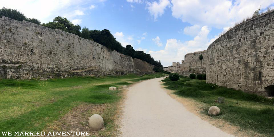 No matter the price, however, the Athineon Hotelli provides the perfect location. We stepped out the front door of the hotel and crossed the road to find the high wooded grounds surrounding the walls of ancient Rhodes. A short walk along the busy port road brought us to the Old Town gate and entrance to the ancient fortified walls of this timeless city.